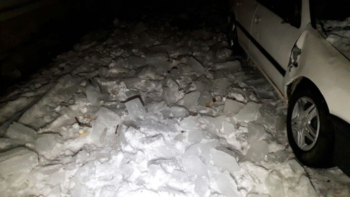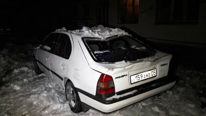 ЧП произошло 2 декабря. С крыши дома № 8 по улице Саина на припаркованные во дворе машины обрушились пласты снега и глыбы льда. Как рассказала владелица Toyota Camry, около 16.00 она приехала домой и припарковала во дворе машину. "С крыши упали сосульки и разбили ее. Я позвонила в КСК, чтобы они разобрались в ситуации, но меня отправили в МЧС", - сказала женщина.