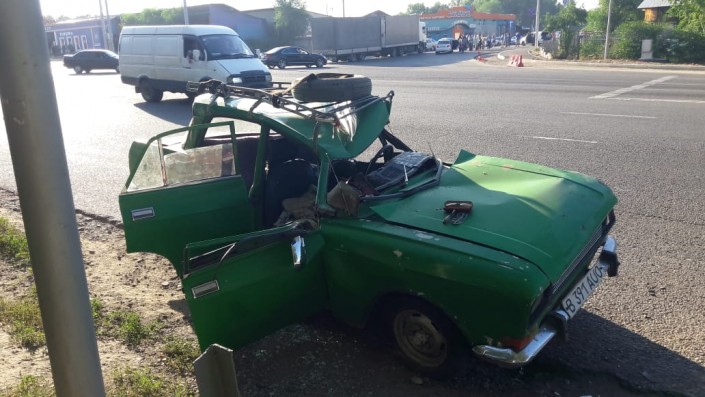 На окраине Алматы грузовой автомобиль раздавил легковой "Москвич", в результате чего три человека попали в больницу, сообщает корреспондент программы "Территория происшествий" на телеканале СТВ.