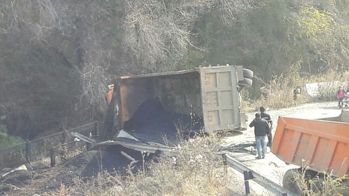 Грузовик с асфальтом опрокинулся в результате ДТП в Алматы, сообщает корреспондент программы "Территория происшествий" на телеканале СТВ.