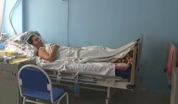 Зарина Байдосова и ее дочь в больничной палате. © ktk.kz