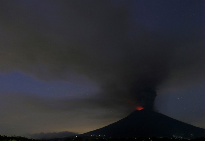 Извержение произошло 25 ноября 2017 года. Вулканический пепел поднялся на высоту 3 000 метров и засыпал тонким слоем близлежащие населенные пункты. Власти острова уже эвакуировали 40 тысяч жителей населенных пунктов, находящихся на расстоянии пяти-восьми километров от вулкана. Всего свои дома должны покинуть около 100 000 человек. Эксперты предполагают, что выбросы пепла и газов из вулкана продолжатся в ближайшие дни, не исключено и извержение лавы.