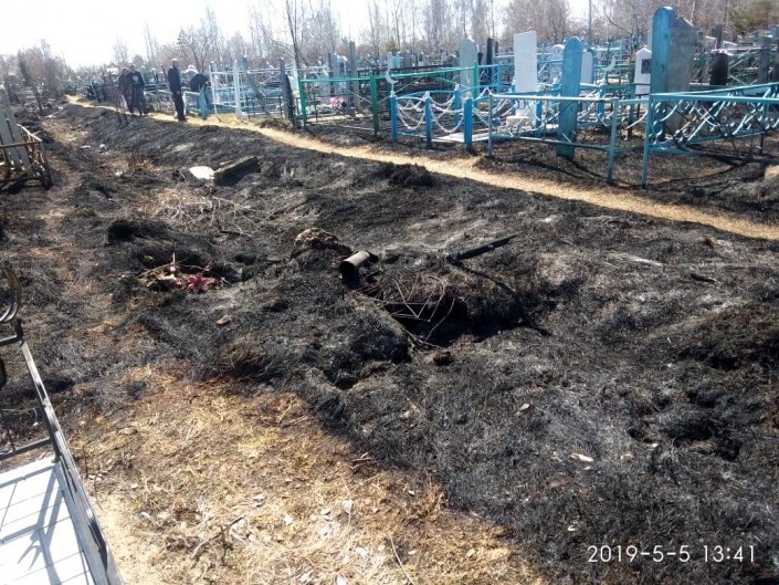 Пожары произошли на кладбищах в Новопавловке и Рабочем поселке. Особенно пострадали могилы, где были деревянные кресты, сгорели венки, обгорели оградки и памятники усопших.