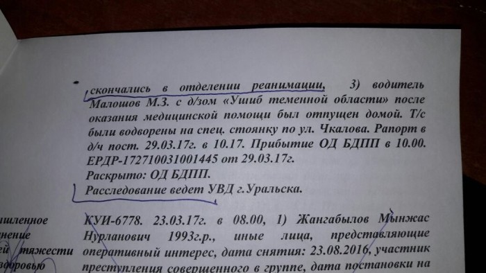 Выписка из официальной сводки полиции. © uralskweek.kz