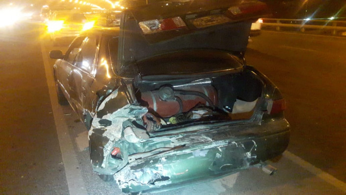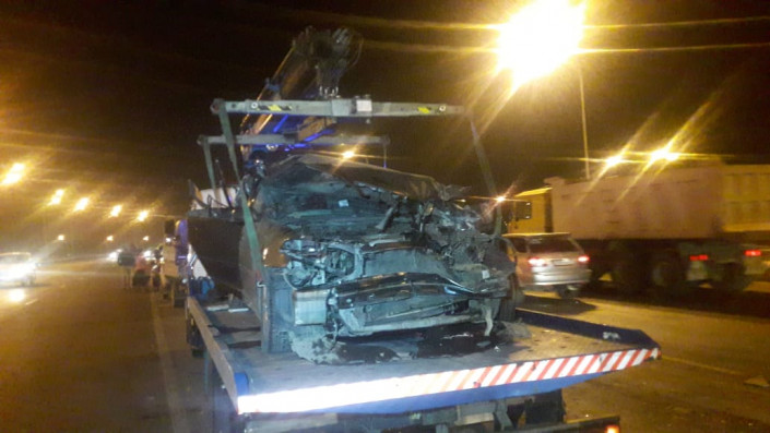 Крупное ДТП произошло вечером в четверг в Алматы на мосту-развязке Рыскулова - Жансугурова, передает корреспондент программы "Территория происшествий" на телеканале СТВ.