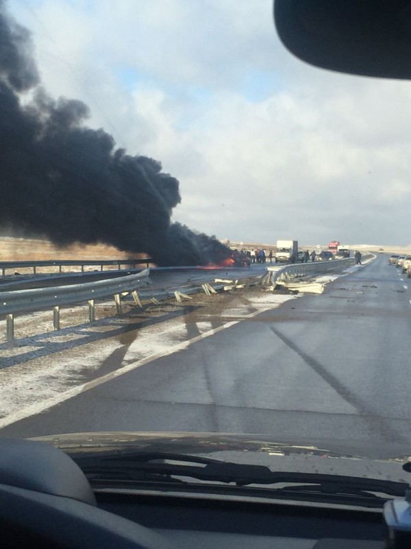 Крупное ДТП с пожаром произошло на трассе Астана - Петропавловск фото с места происшествия