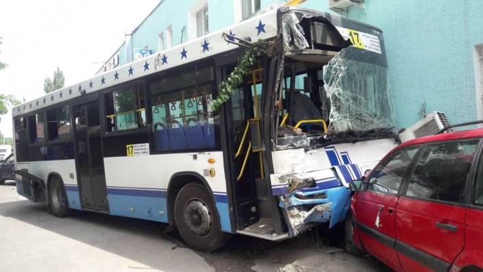 Одним из участников ДТП стал автобус 17 маршрута. На месте аварии сломано дерево, смято несколько машин. Судя по всему, водитель автобуса также врезался в стену дома.