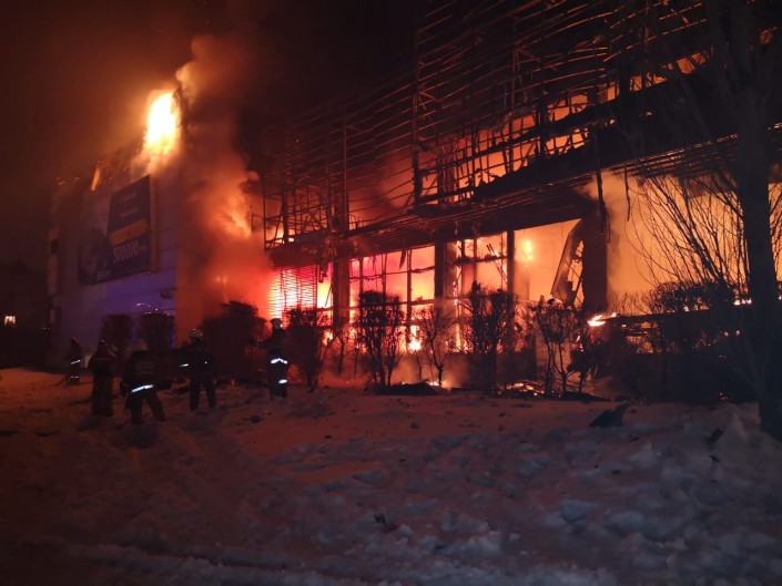 По прибытию пожарных был объявлен третий, повышенный ранг пожара. Из-за обрушений внутренних конструкций, было принято решение тушить пожар с наружной стороны.