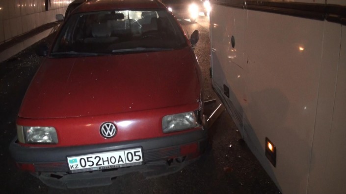 Первая авария произошла по улице Саина, не доезжая до улицы Улугбека. Столкнулись автомобили Opel и Toyota Camry, которые двигались в северном направлении. Как сообщили очевидцы ДТП, водитель Opel не справился с управлением и врезался в разделительное ограждение, после чего отлетел в Toyota Camry. В результате столкновения никто не пострадал.