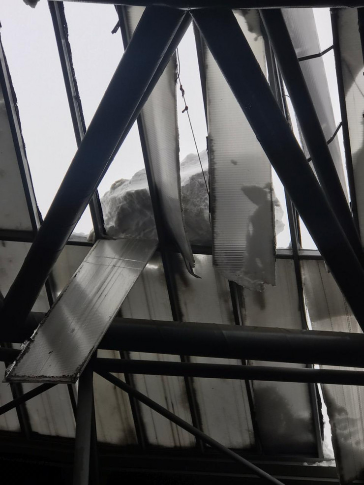 Он объяснил, что причинами этого стали обильные снегопады и дождь. "Сейчас же снегопады, а эти плитки стоят на самом краю, и снег, который с крыши, он должен был упасть сам, но пошел дождь, и поэтому масса снега стала намного тяжелее и не могла самостоятельно сойти", - рассказал директор спорткомплекса.