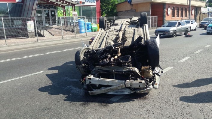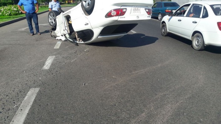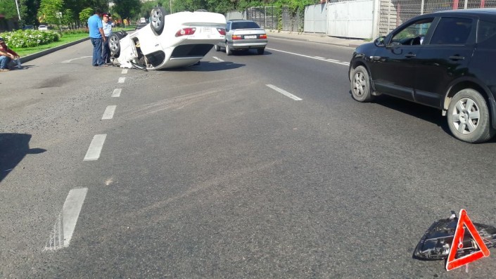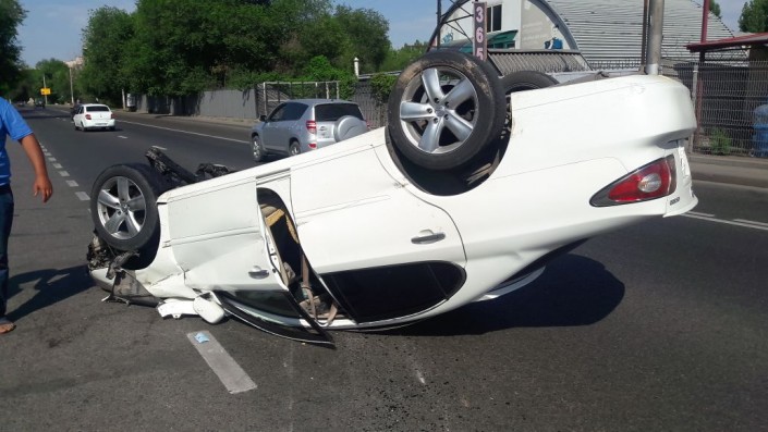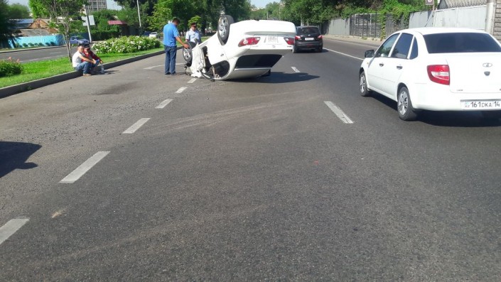 По словам водителя, его якобы кто-то подрезал, он вильнул рулем влево, ударился в бордюр, и машина перевернулась.