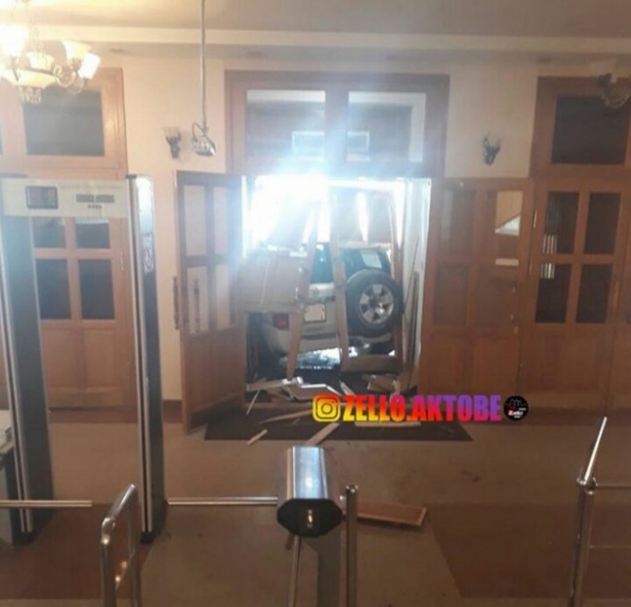 Ранее в социальных сетях появились фотографии очевидцев, на которых было видно, что автомобиль протаранил парадный вход областного акимата.