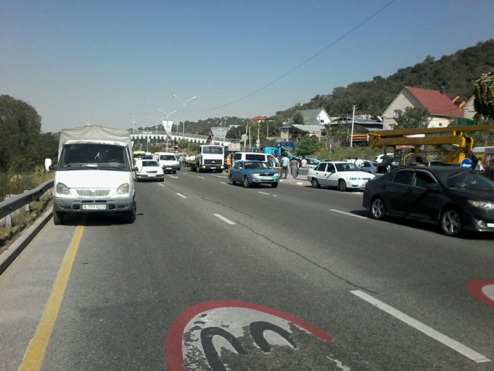 Крупное ДТП с участием шести автомобилей произошло на Восточной объездной автодороге (ВОАД) в Алматы, сообщает корреспондент программы "Территория происшествий" на телеканале СТВ.