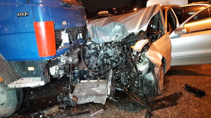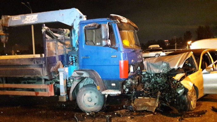 По словам очевидцев, автомобиль Mercedes-Benz двигался по Момышулы на север. По неизвестной причине водитель выехал на полосу встречного движения, где столкнулся с Mercedes-Benz W211, который двигался в южном направлении. Он удара Mercedes отбросило в LADA, после чего он врезался в манипулятор.