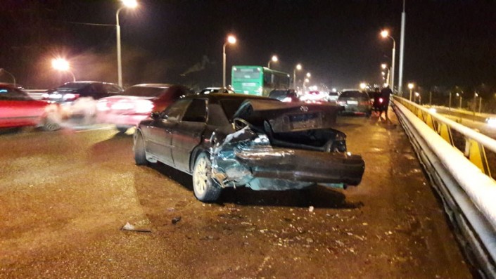 Массовое ДТП произошло на мосту на пересечении проспекта Райымбека с улицей Момышулы, передает корреспондент программы "Территория происшествий" на канале СТВ.
