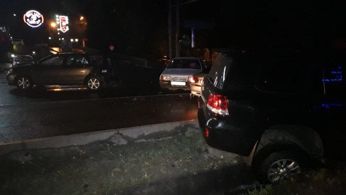 Авария произошла на проспекте Достык. Со слов очевидцев, автомашины "Лада" и Nissan остановились перед светофором на пересечении с улицей Хаджимукана. Водитель внедорожника Toyota, двигавшийся по Достык на север, не успел среагировать и на полном ходу влетел в Nissan, который в свою очередь врезался в "Ладу". От удара внедорожник слетел в арык