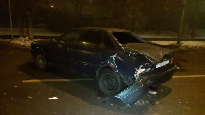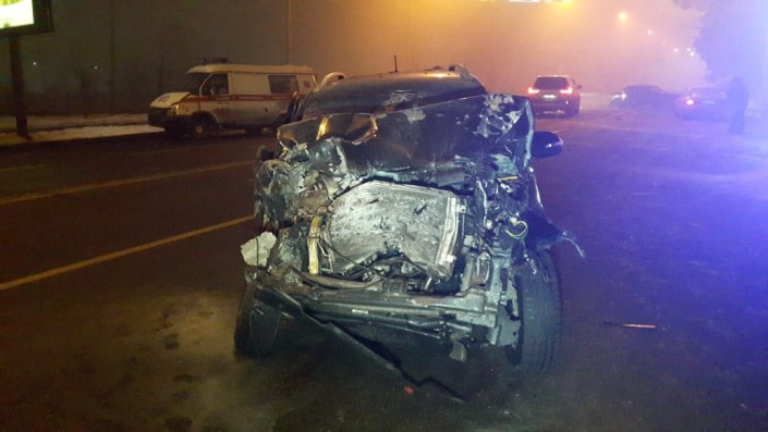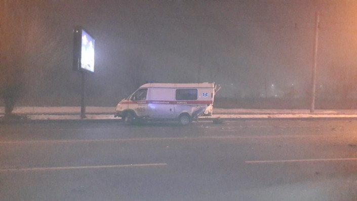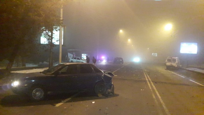ДТП произошло на улице Розыбакиева. Со слов очевидцев, водитель скорой из-за плохой видимости не заметил автомобиль Audi, который решил развернуться на разделительной полосе. От удара Audi отбросило на полосу встречного движения.