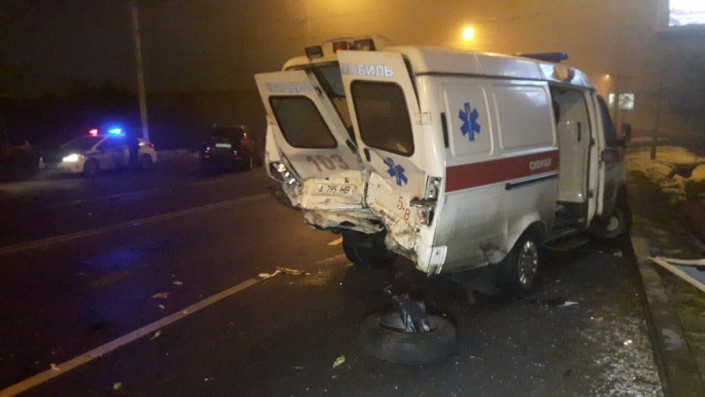 Пока водители ждали оформления ДТП, в скорую врезался автомобиль SsangYong. После этого внедорожник столкнулся с LADA.