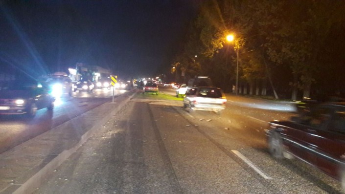 На одной стороне проспекта столкнулись Nissan Micra, Toyota Mark II, BMW и Mercedes-Benz Geländewagen, залетавший на разделительную полосу. На противоположной стороне - Renault и Nissan. Никто не пострадал.