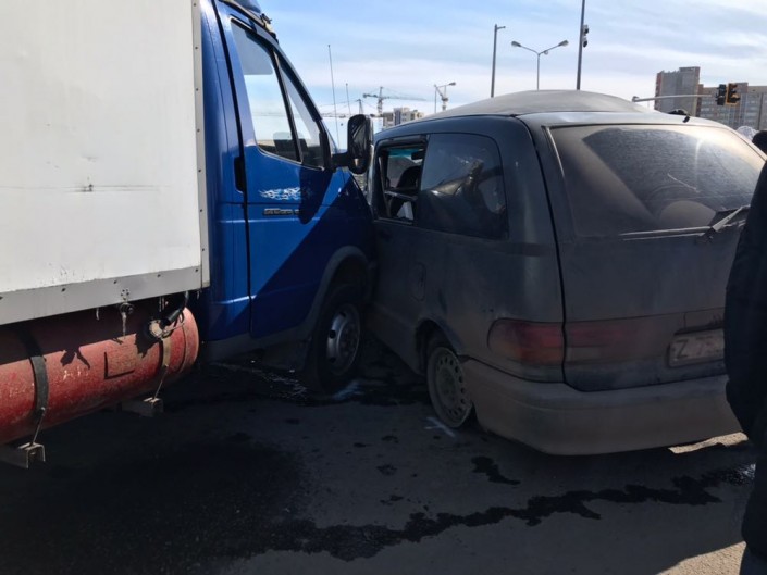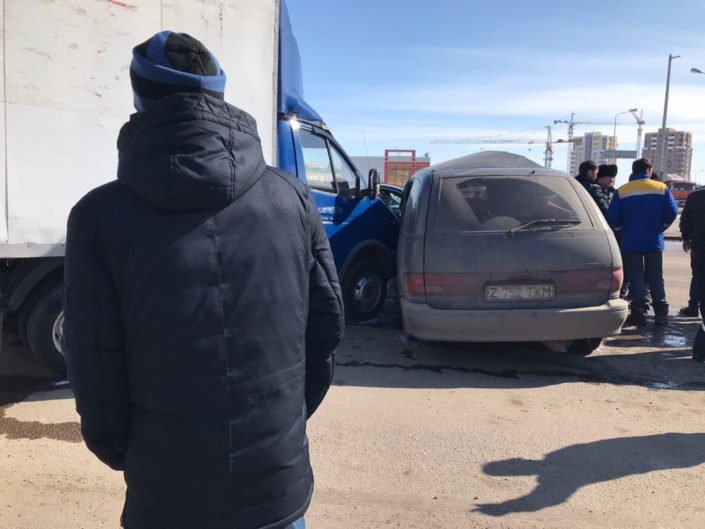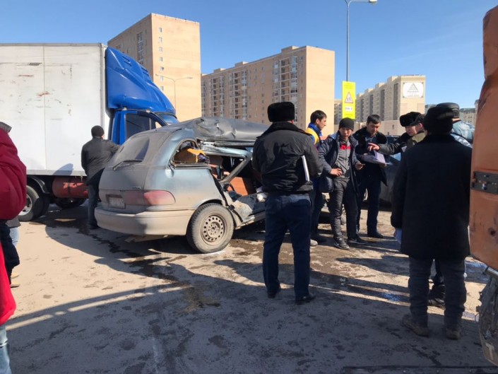 Массовое ДТП в Астане: столкнулись КамАЗ, "Газель" и три авто