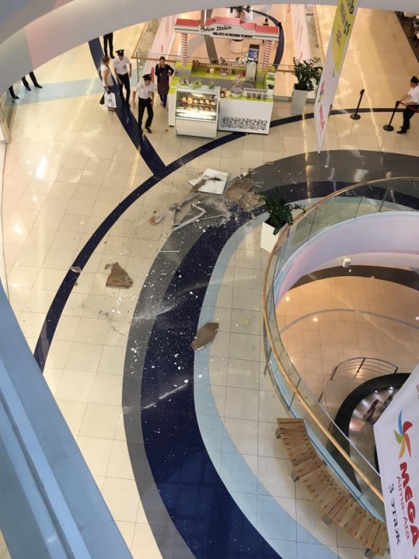 В MEGA Alma-Ata из-за ливня частично обрушилась отделка потолка Фото Facebook/Olga Golovina.