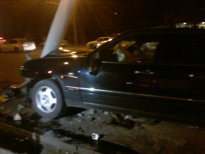 В результате аварии Mercedes врезался в мачту светофора на перекрестке и согнул его на несколько градусов. От удара двух автомобилей никто из водителей и пассажиров не пострадал.