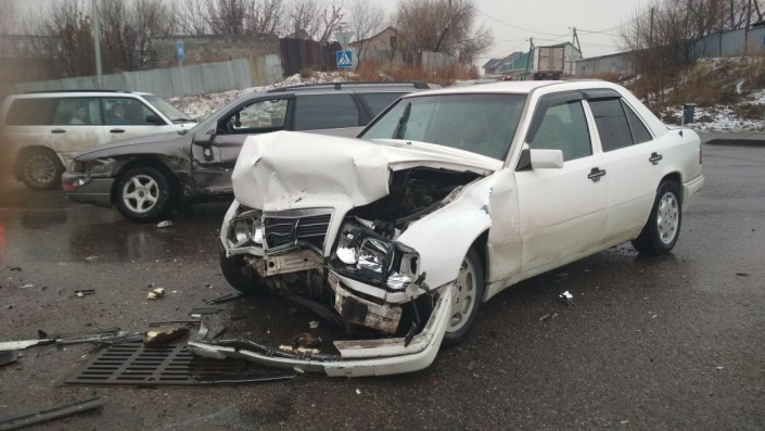 ДТП произошло вдоль БАКа по новой дороге, на повороте на рынок "Ожет". Автомашина Mercedes двигалась в восточном направлении, в этот момент в северном направлении двигалась Toyota Camry, водитель которой хотел сделать поворот на новую дорогу вдоль БАКа. В результате Mercedes ударил Toyota Camry, их откинуло на полосу встречного движения.