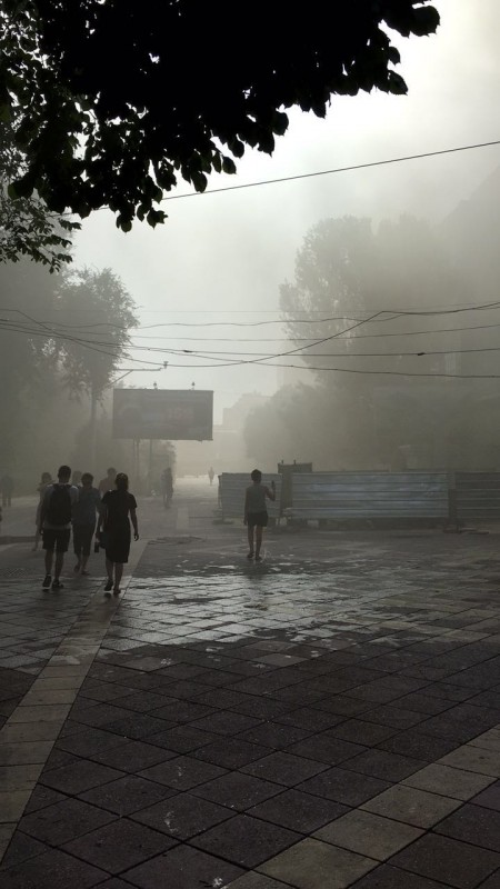 На Арбате в Алматы горело здание с ресторанами Фото очевидца.