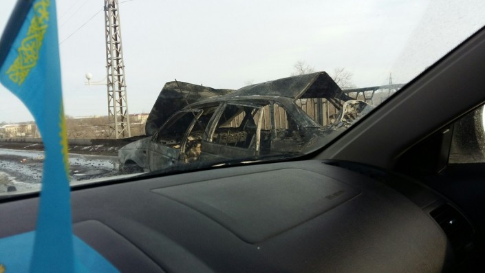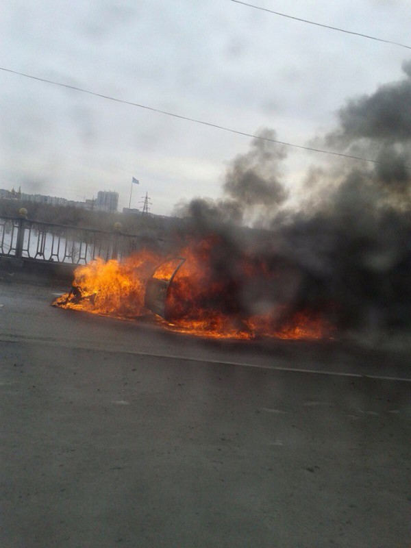 В Актобе на мосту в 5-м микрорайоне днем 23 января загорелся и взорвался легковой автомобиль Volkswagen Passat. Очевидцами инцидента стали десятки автолюбителей. Видео и фото происшествия они прислали на страницу zello_aktobe в Instagram.
