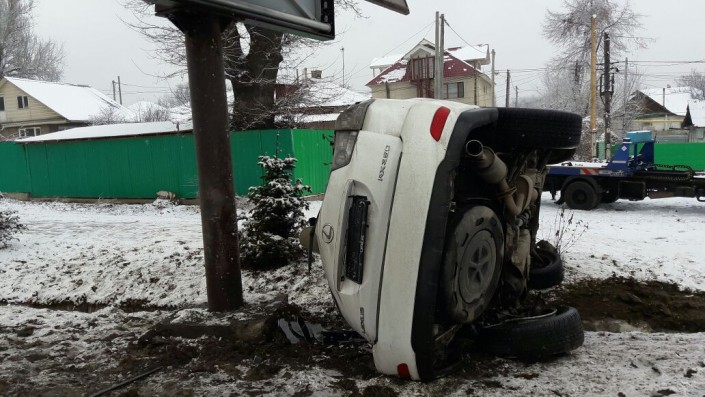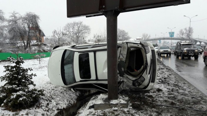 На ВОАД в Алматы произошло ДТП с участием внедорожника, который перевернулся возле рекламного баннера. Об этом корреспонденту Tengrinews.kz сообщили очевидцы.