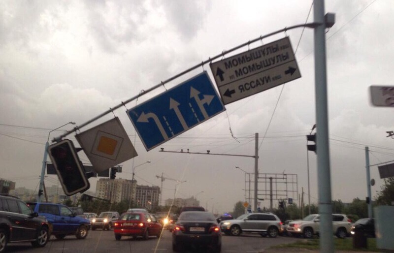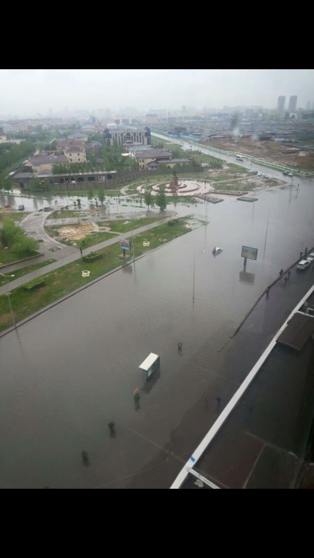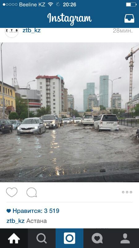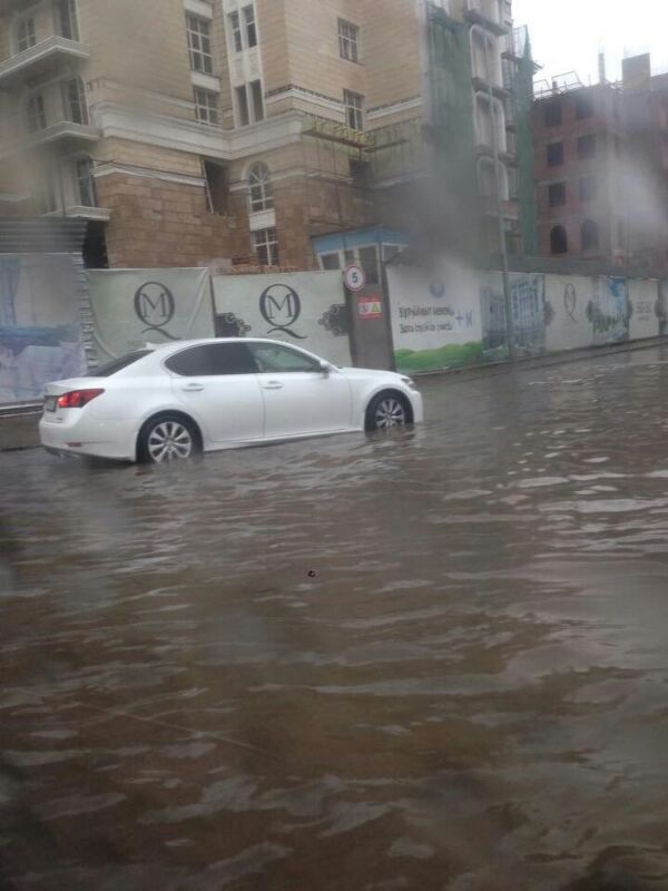 Между тем, в Астане в субботу тоже царила непогода. Из-за сильного ливня на дорогах столицы хаос. Фотографии и видео выкладывают пользователи соцсетей.