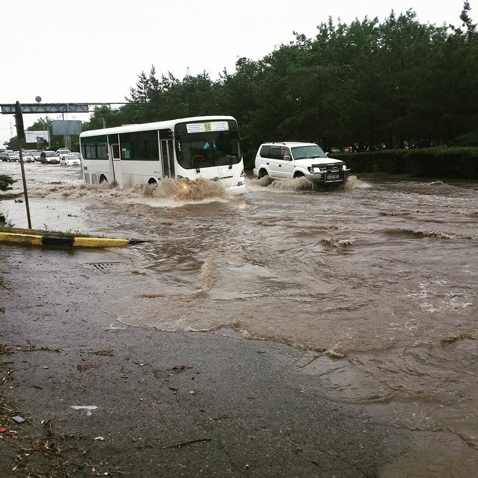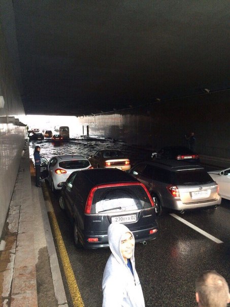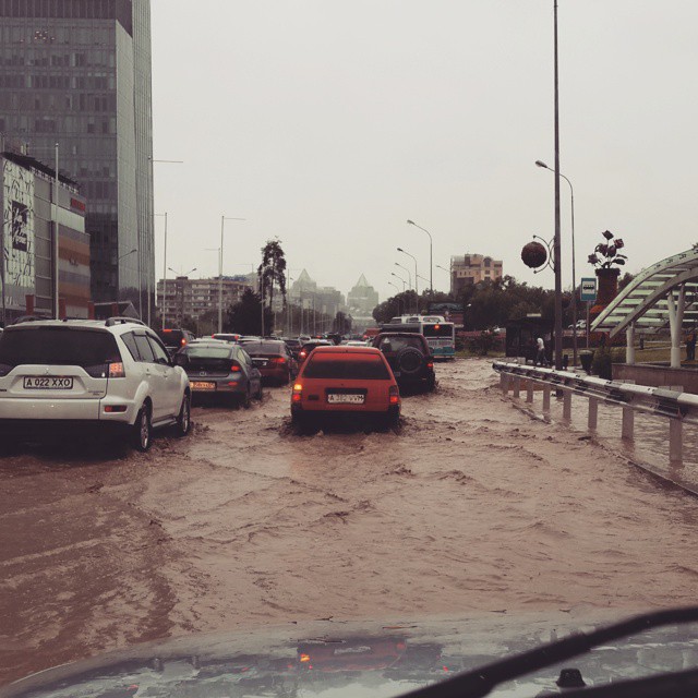 "По Аль-Фараби в обоих направлениях под мостом на Фурманова проезд невозможен, воды по пояс. Легковые машины заглохли и практически перекрыли движение. Корректируйте маршрут", - написал один из пользователей в соцсетях.