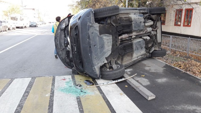 Nissan Qashqai перевернулся от удара "легковушки" в Алматы "Территория происшествий"©