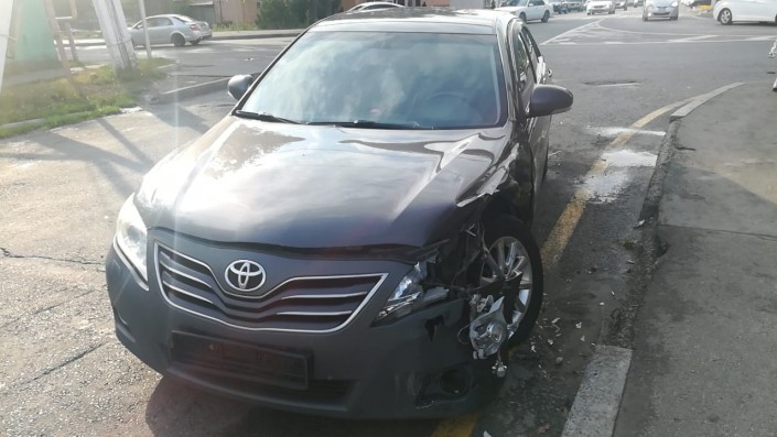 Авария произошла на пересечении улиц Рыскулова и Жандосова в районе верхней Каменки. По словам очевидцев, водитель автомобиля Nissan, двигаясь по Рыскулова, не заметил знак "Уступи дорогу" и выехал на перекресток, где столкнулся с Toyota. От удара Nissan врезался в здание магазина.