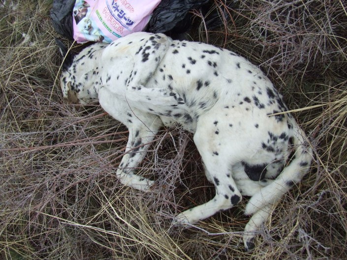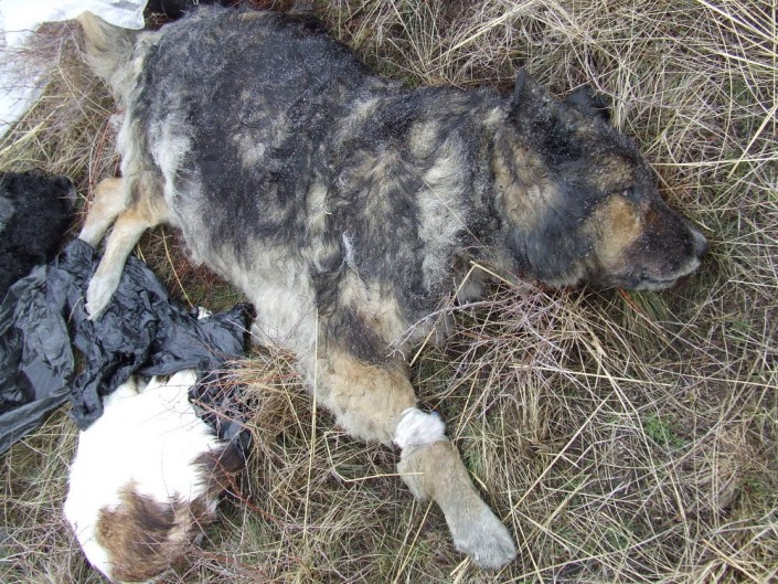 По словам мужчины, на днях он случайно наткнулся на собачьи трупы на выезде из города по Алматинской трассе, приблизительно в сотне метров от основной дороги. "На площади около десяти квадратных метров были разбросаны тела мертвых собак, а рядом с ними лежали мешки также с останками домашних животных, вероятно кошек или щенят. Некоторые собаки явно породистые. Поблизости в целлофановом пакете лежал мертвый попугай. Было сложно определить, убиты эти животные или умерли своей смертью", - рассказал правозащитник Алексей Божков, который также побывал на месте.