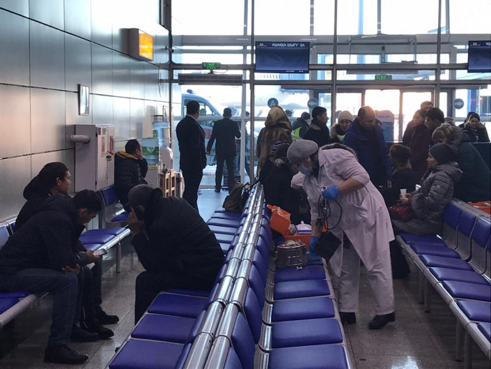 11.05 Сейчас в аэропорту Алматы. В медпункте, в зоне ожидания вылета - везде помогают медики.