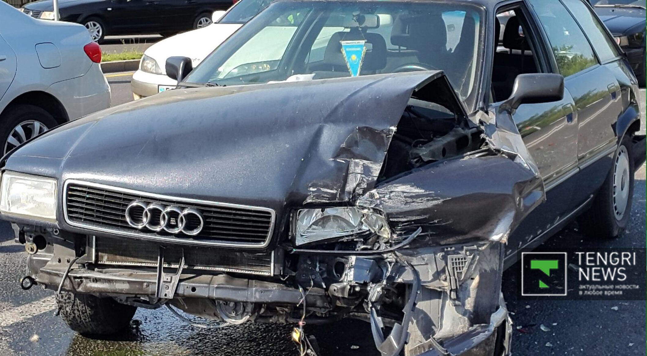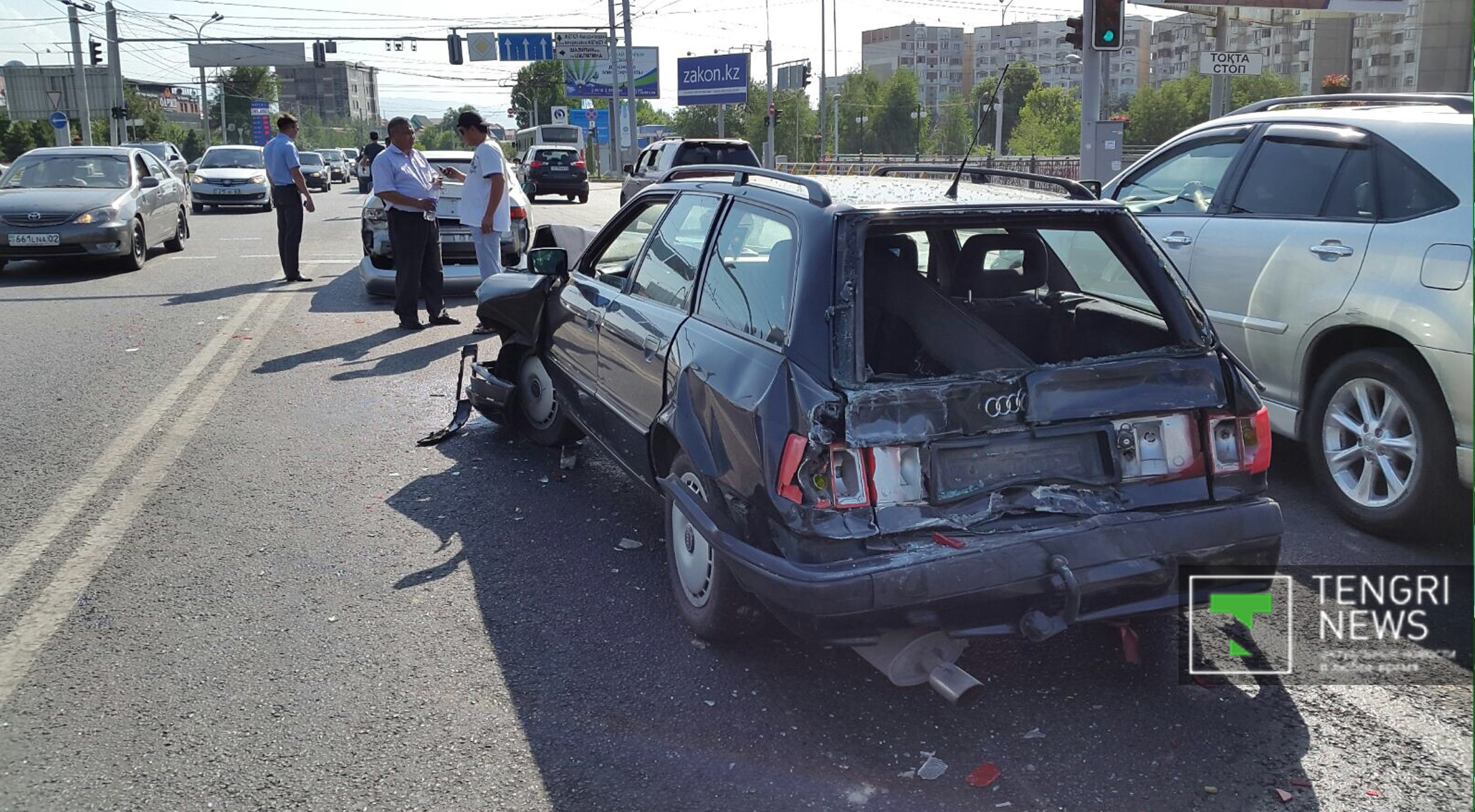 Инцидент произошел на пересечении проспекта Абая и улицы Саина. Автобус №92 двигался по проспекту Абая в западном направлении. На перекрестке он врезался в автомобиль Audi, который затем столкнулся с Volkswagen Touareg, а тот, в свою очередь, по инерции задел автомобиль Toyota Camry.