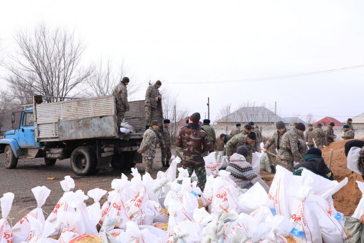 К борьбе с паводками задействовали и военнослужащих Министерства обороны. 100 солдат войсковой части № 44859 Вооруженных сил, личный состав пожарной части № 7, специалисты "Жасыл Арыс", волонтеры молодежного ресурсного центра подключились к работе, готовили и отправляли в сельские округа мешки с песком в предполагаемые зоны затопления. На дежурных постах осуществляется контроль речного стока и уровня воды.
