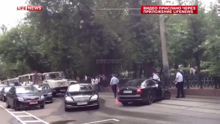 "Водитель Skoda имел внешние признаки алкогольного опьянения, - сообщил телеканалу источник в ГИБДД Москвы. - Он проходит медицинское освидетельствование". По словам очевидцев, в результате аварии возле дипломатического ведомства было перекрыто движение трамваев.