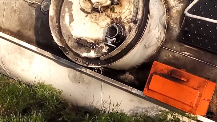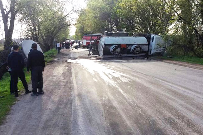 Очевидцы рассказали, что на пути у бензовоза столкнулись внедорожник Mitsubishi Pajero и легковушка LADA. Пытаясь избежать столкновения, водитель автоцистерны резко сманеврировал и завалил машину набок. При этом цистерна с топливом укатилась на обочину другого края дороги. Водителя вытащили из кабины живым и невредимым.