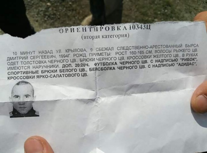 Также он добавил, что до побега Бырса Д. С. был задержан по подозрению в совершении ряда краж.