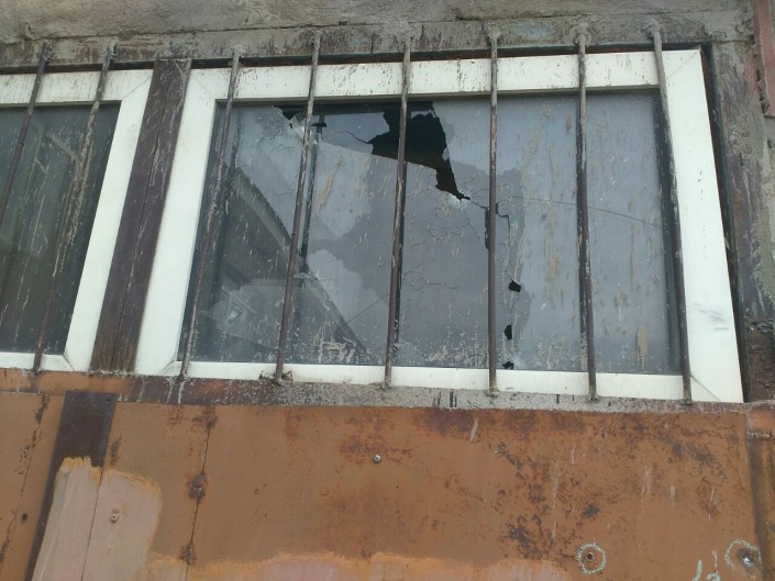 На фотографиях отчетливо видны следы от пуль, выбитые стекла.