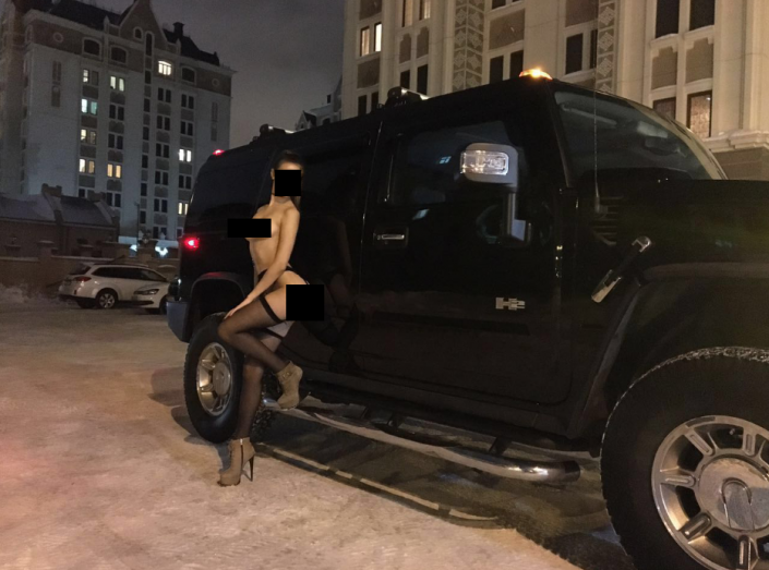 В редакцию Tengrinews.kz читатели прислали фотографии обнаженной девушки во дворе одного из элитных жилых комплексов Астаны. На кадрах видно, что девушка позирует около внедорожника в чулках и обуви. Отметим, что вечерняя температура воздуха в Астане составляет ниже 10 градусов.