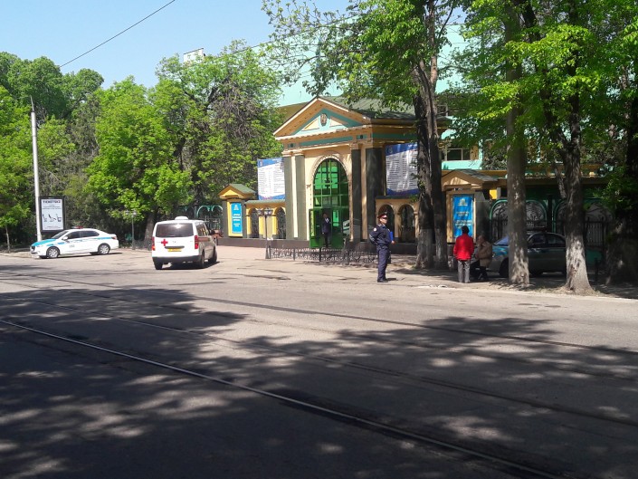 Помимо этого, полиция перекрыла движение по улице Жамбыла в сторону проспекта Достык, на ее пересечении с улицей Фурманова была установлена желтая линия. На пересечении этих улиц также дежурят полицейские и сотрудники Нацгвардии. В районе наблюдаются значительные пробки.