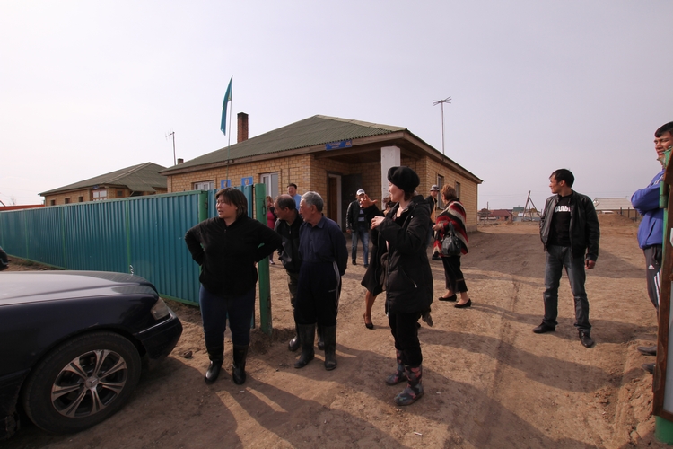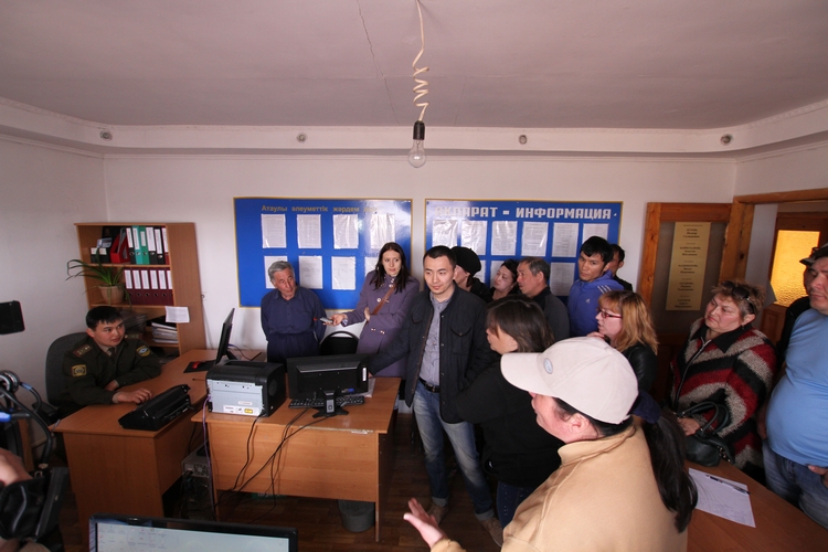 Вместе с местными жителями мы отправились к дому, где расположен акимат Талапкера. Но акима там не застали. Зато граждан встретил главный специалист отдела ЧС Целиноградского района Сабит Кенжебеков.