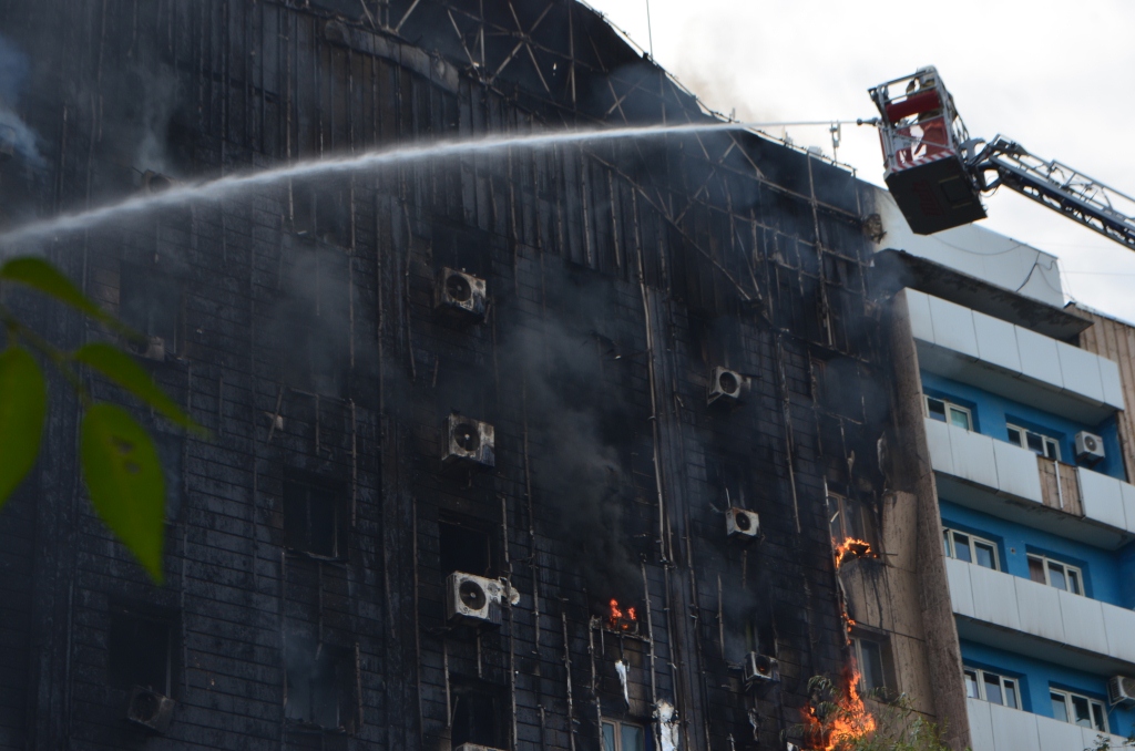 На снятых очевидцами роликах видно, что люди, пытаясь спастись от огня, выпрыгивали из окон (автор Болат Азимбаев):