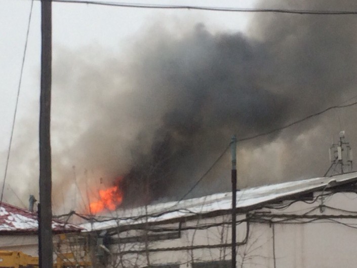 К моменту прибытия дежурных караулов к месту пожара стало известно, что открытым огнем горит кровля. Был объявлен второй номер вызова.