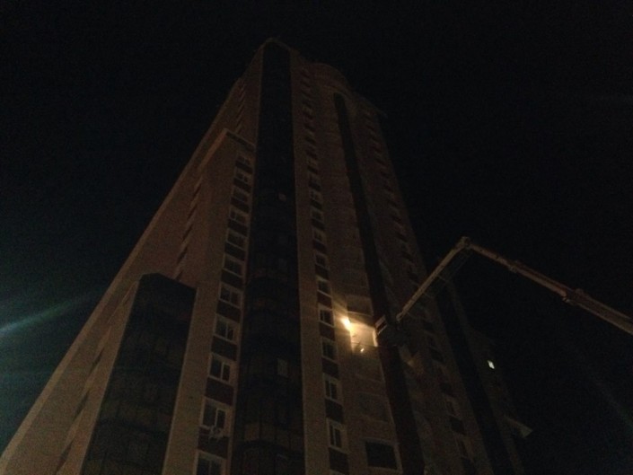 Сообщение о возгорании в ЖК "Байконур" поступило в столичную службу пожаротушения в 02.12. В 02.17 пожарные прибыли на место происшествия. По прибытии было установлено, что пожар произошел в кабельной шахте с 5 по 9 этажи, при этом образовалось сильное задымление с 5 примерно по 20 этаж. Пожар был локализован и ликвидирован уже в 02.35.