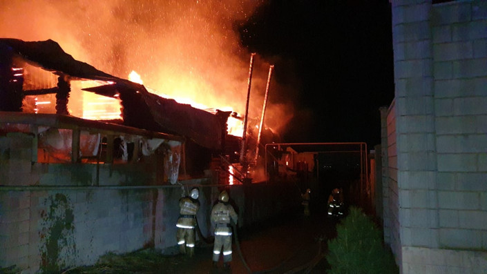 Крупный пожар произошел в Алматы. В микрорайоне Нур Алатау огонь охватил банный комплекс, передает корреспондент программы "Территория происшествий" на канале СТВ.