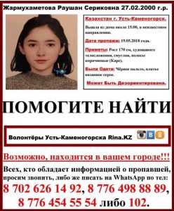 Появилась неофициальная информация о том, что тело девушки нашли в реке Иртыш за городом. Брат пропавшей Самат Жармухаметов подтвердил информацию.