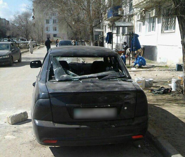Разъяренная девушка разгромила автомобиль в Атырау Фото очевидца